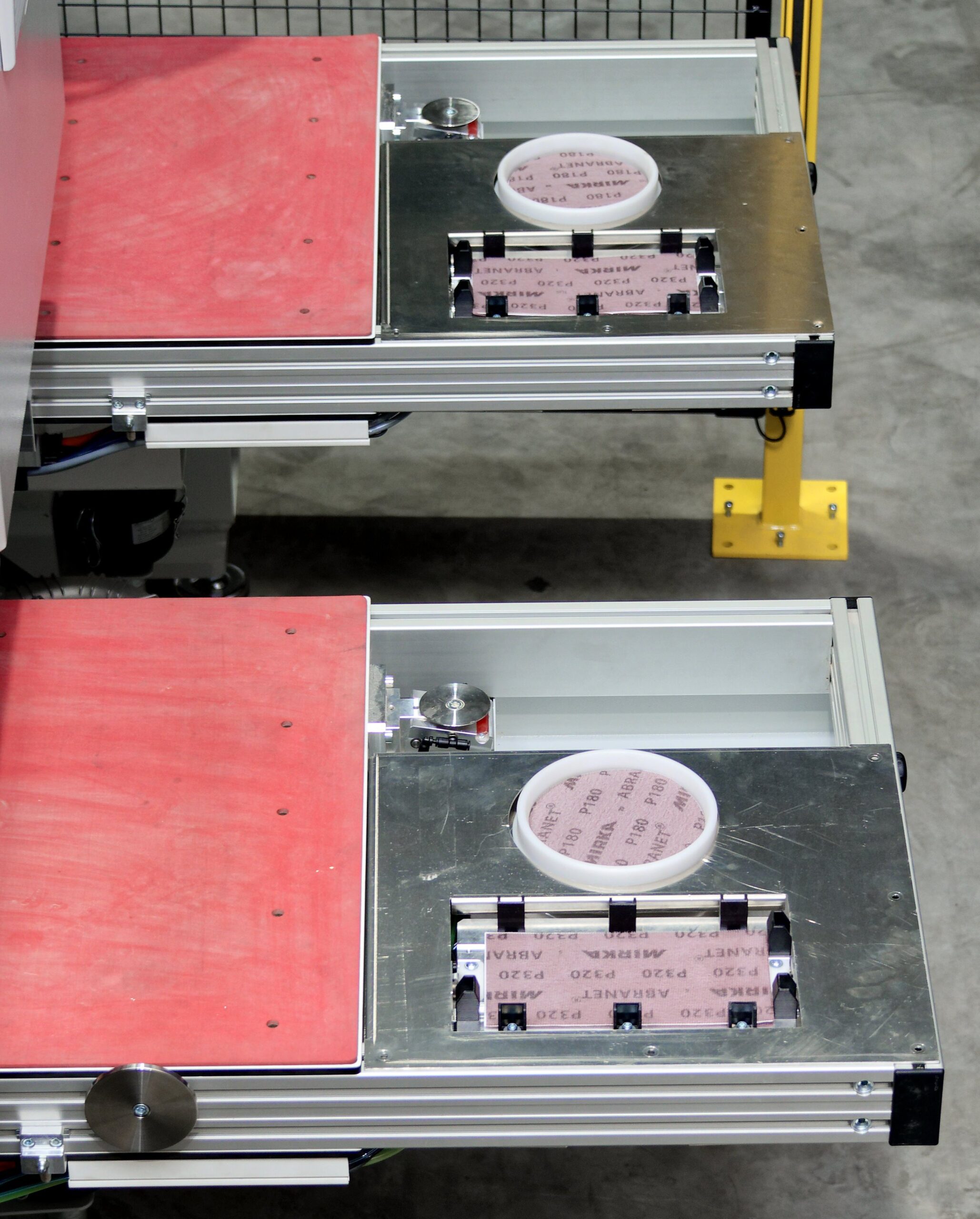 Das Aggregat mit dem rechteckigen Schleifpad ist somit für den Füllungsbereich und das Aggregat mit dem runden Schleifpad für die Rahmenprofile oder Flächen prädestiniert.